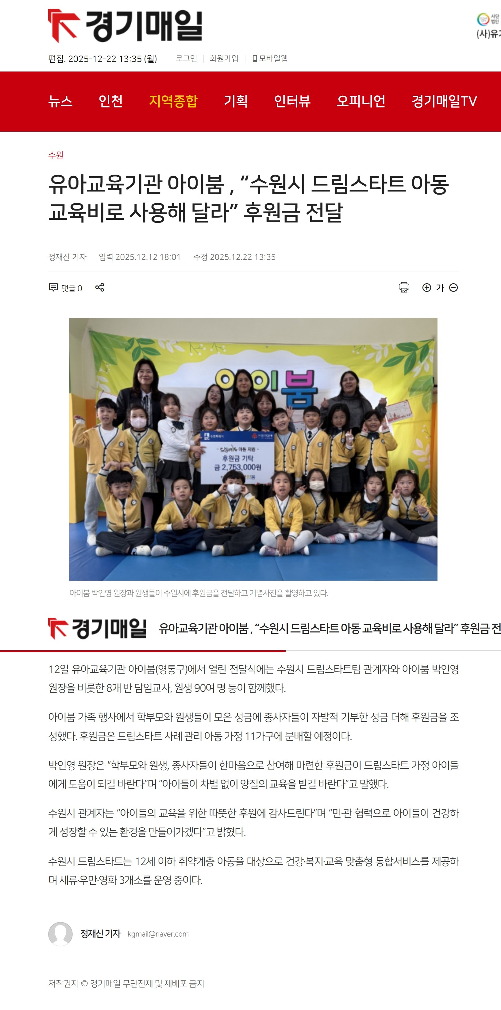 2025년 12월 12일, 아이붐 가족의 기부금을 전달하였습니다.